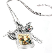 This Colorful stainless steel square locket features the beautiful vintage art of "Cinderella". It is surrounded by colorful crystals, 4 silver charms of Cinderella, Glass Slipper, Pumpkin Coach, and Fairy Godmother wand, with Sparkling Crystal in Pumpkin Orange and Purple Velvet. Handcrafted in Timeless Stainless Steel because how its made matters.