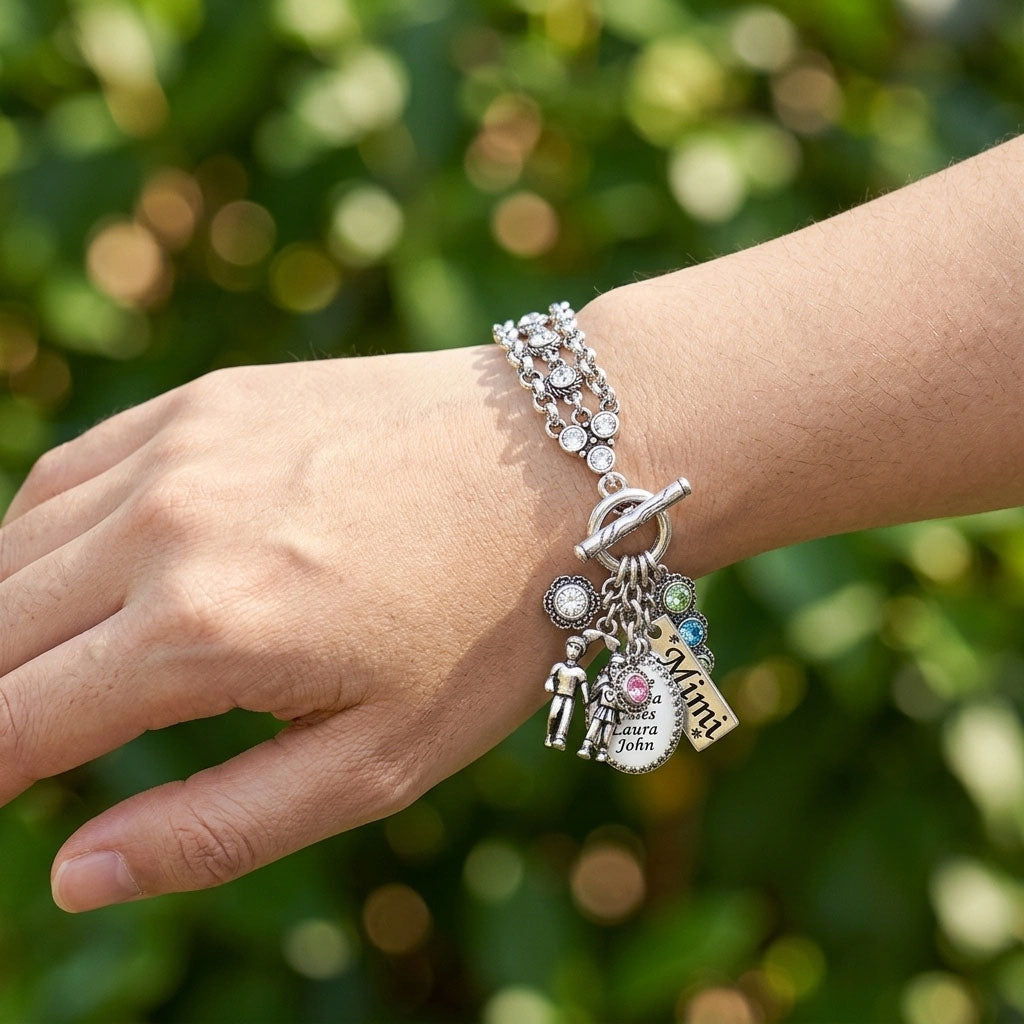 Birthstone Charm Bracelet – Personalized Mom & Grandma Kids Name Jewelry