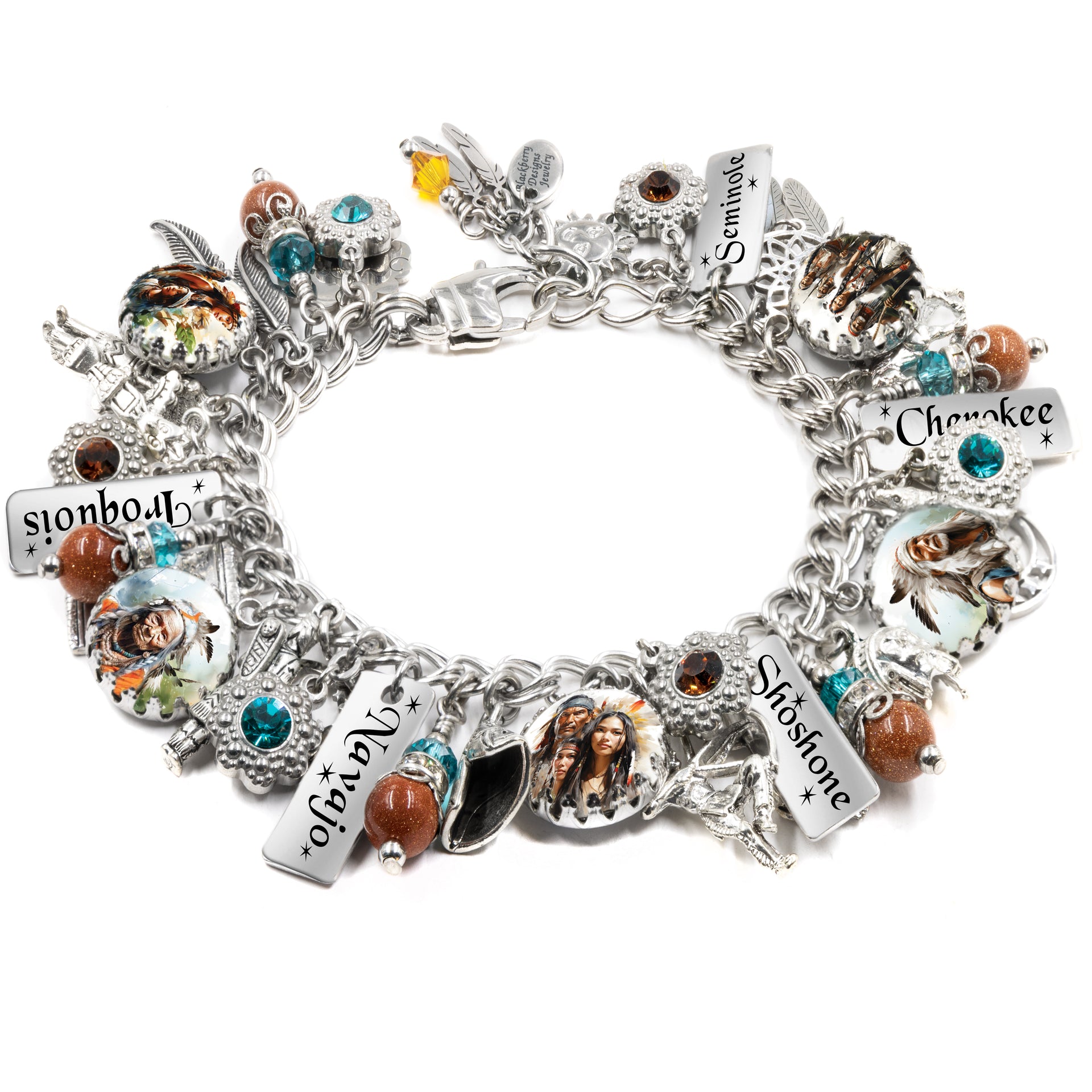Introducing the American Indian Turquoise charm bracelet - a stunning piece of jewelry that is sure to impress. With fast shipping and beautiful gift wrapping, you can trust that your purchase will be handled with care. And when you open the package, you'll be amazed by the gorgeous American Indian Tribal charm bracelet inside. Customers rave about its beauty, calling it the most gorgeous bracelet they've ever seen. Not only is it precious and a work of art, but the American Indian Tribal charm bracelet's also a great conversation starter - people will be impressed by the intricate artistry up close. So don't wait - add the engraved charm bracelet to your collection today and start showing it off to all your friends!