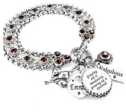 January is for Garnet! What a great January Birthday Gift for Mom, Sister, Best Friend, Grandma or Just Because. This beautiful Birthday Bracelet created in Sparkling crystals, sterling silver setting, solid Timeless stainless. A beautiful birthstone bracelet for a loved one to celebrate their birthday. Shop Now!