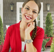 T'was the Night Before Christmas and Santa is coming down the Chimney in these fun vintage images from the early 1900's. Over 38 silver charms depict Santa delivering gifts on Christmas Eve. Includes Colorful Sparkling Crystals in Sapphire and Ruby Red. Masterfully Crafted, Magically Charming, One of a Kind Jewelry because our artists believe, how it's made matters.