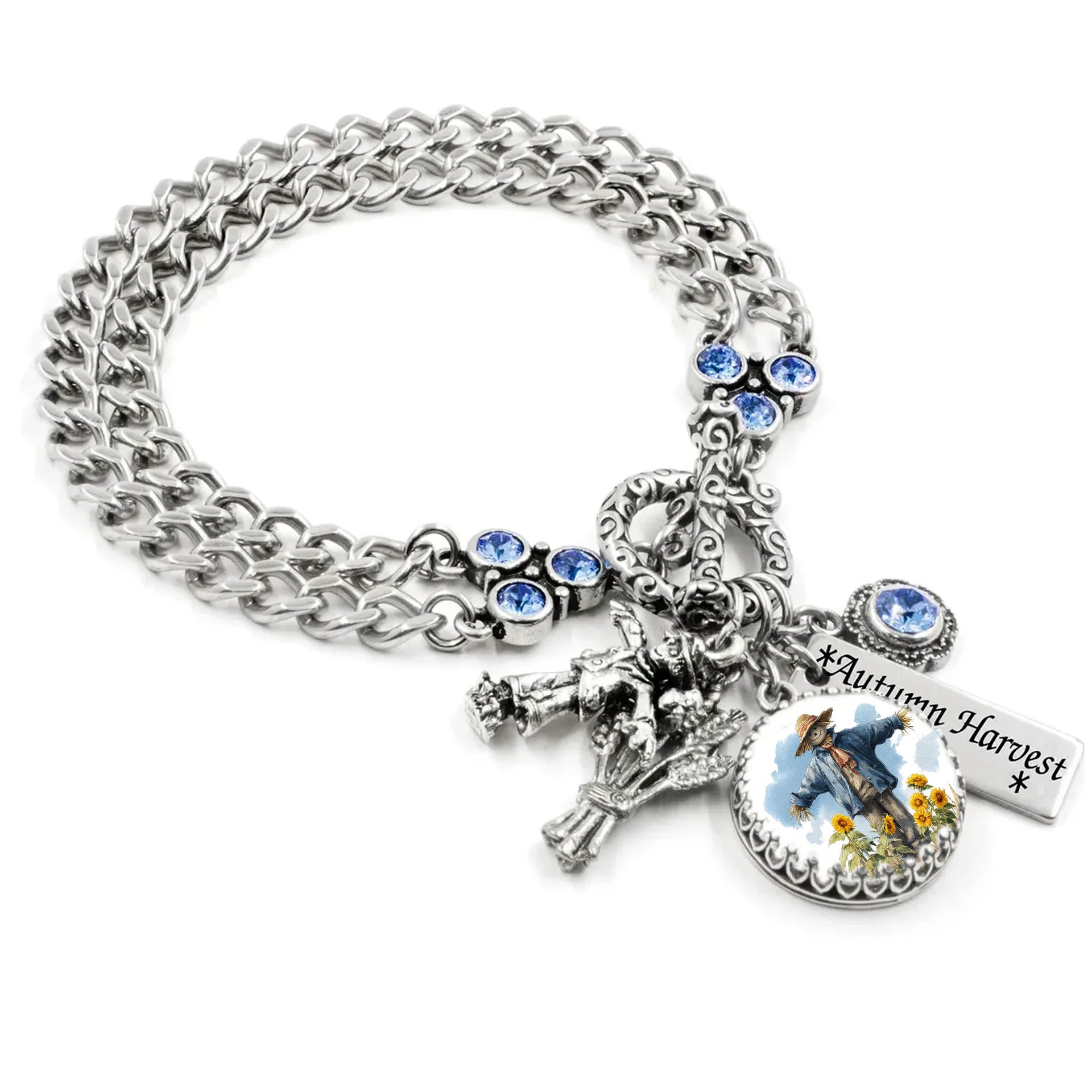 Autumn Scarecrow Charm Bracelet – Fall Harvest Jewelry in Tarnish-Free Silver