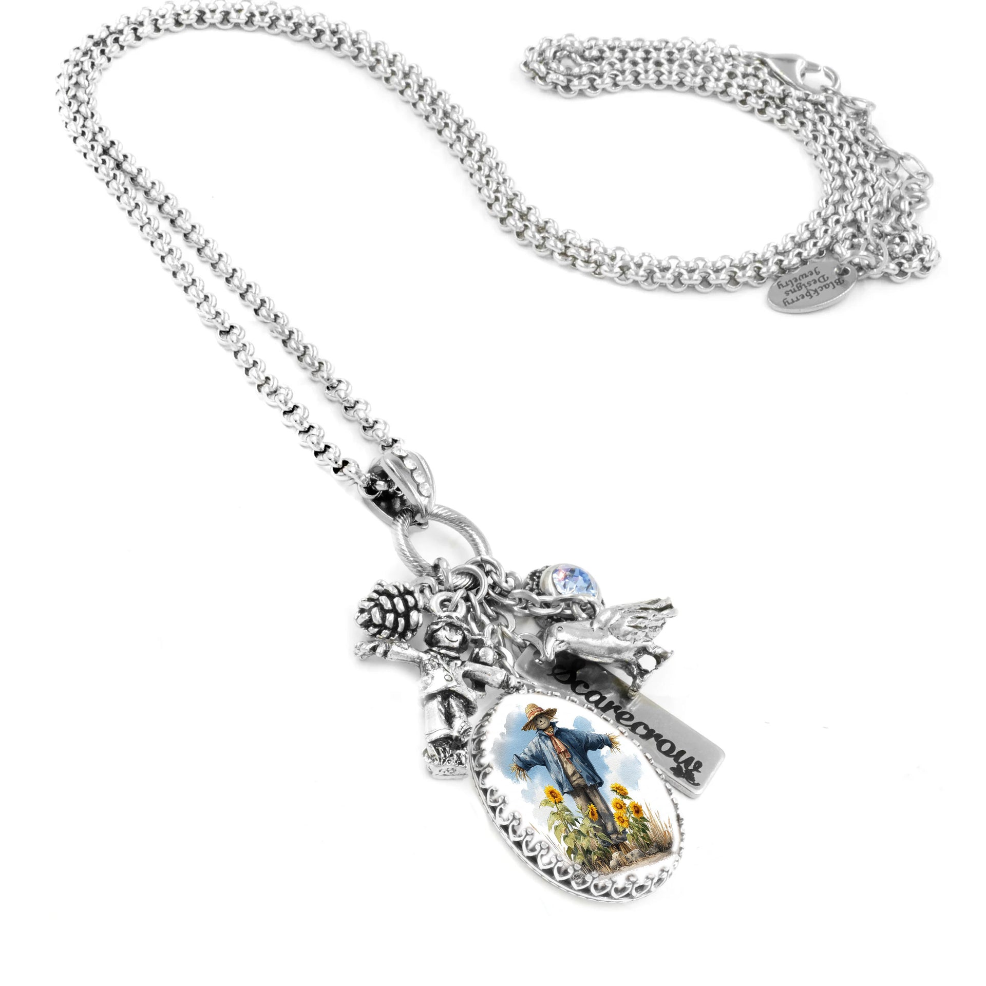 • Silver scarecrow charm engraved for durability and guaranteed never to tarnish