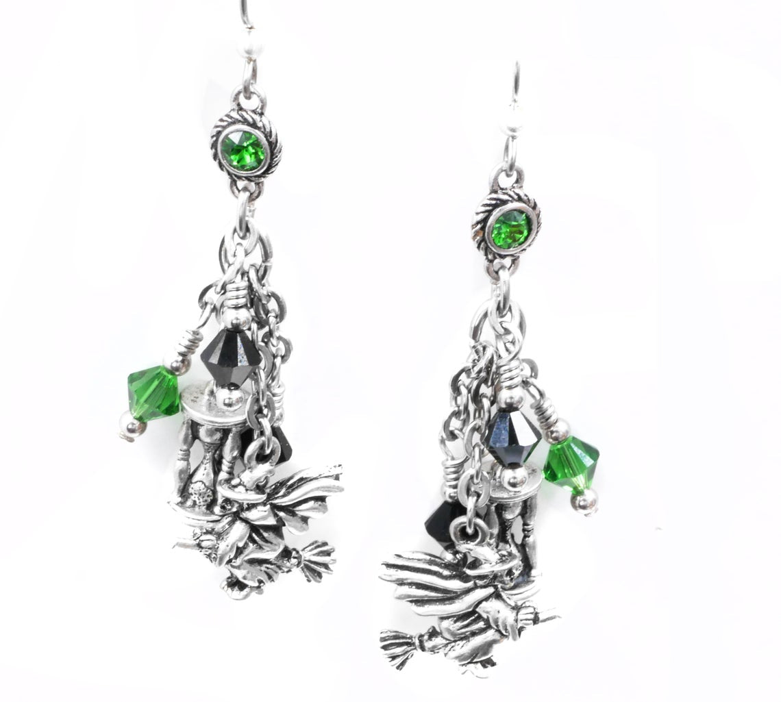 Beware the air that stirs at midnight--it just may be a witch! Adorn yourself with these fun Witch Earrings for Halloween, complete with hourglass, emerald, and moonlit black crystals. Extra-special artist-crafted jewelry crafted with Timeless Stainless Steel, because how it's made matters.