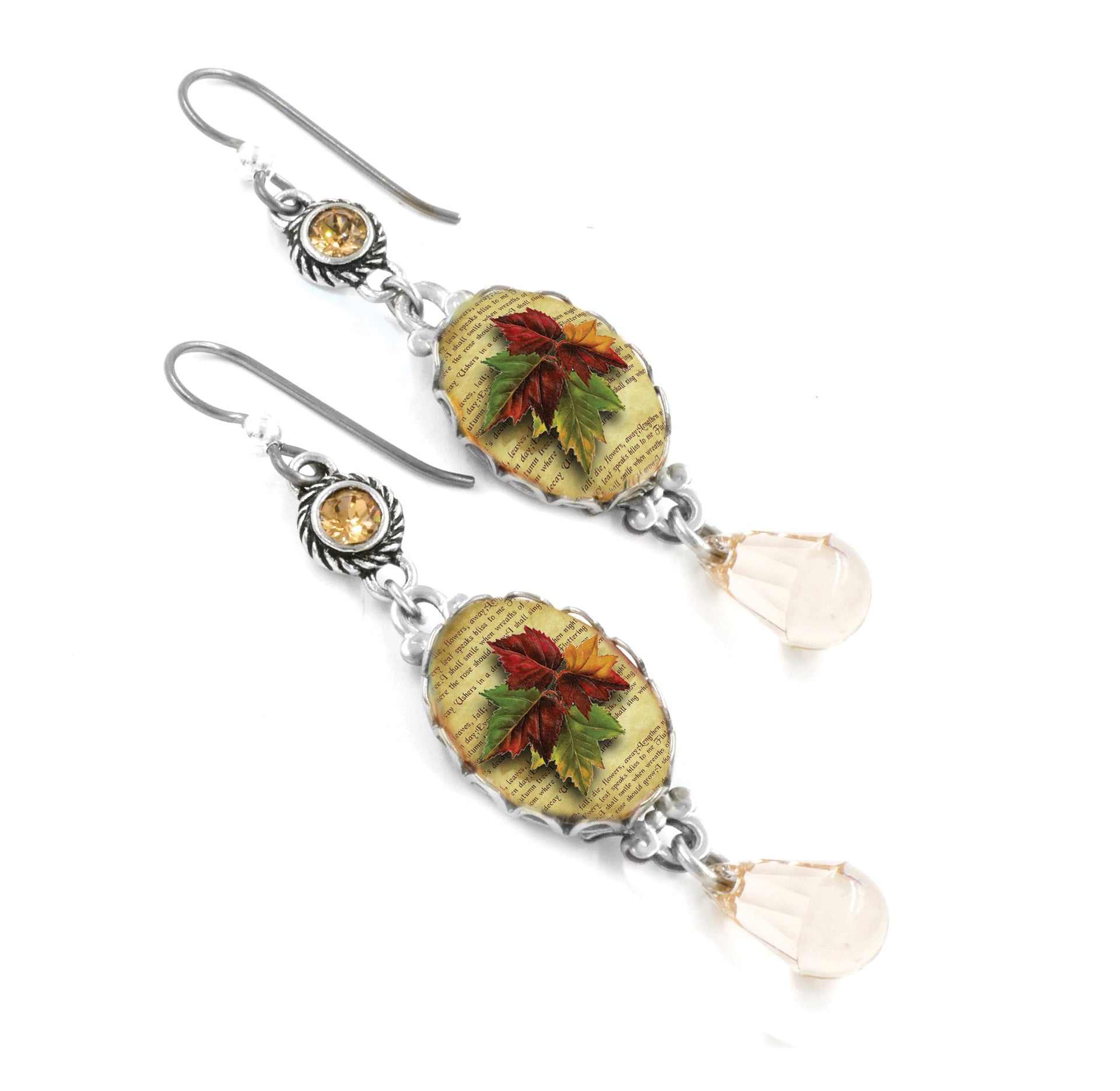 Vintage Maple Leaves with Topaz Crystals in time for Thanksgiving. The images are from the early 1900's. You'll have these just in time for turkey dinner!. Handcrafted Jewelry created in stainless steel.
