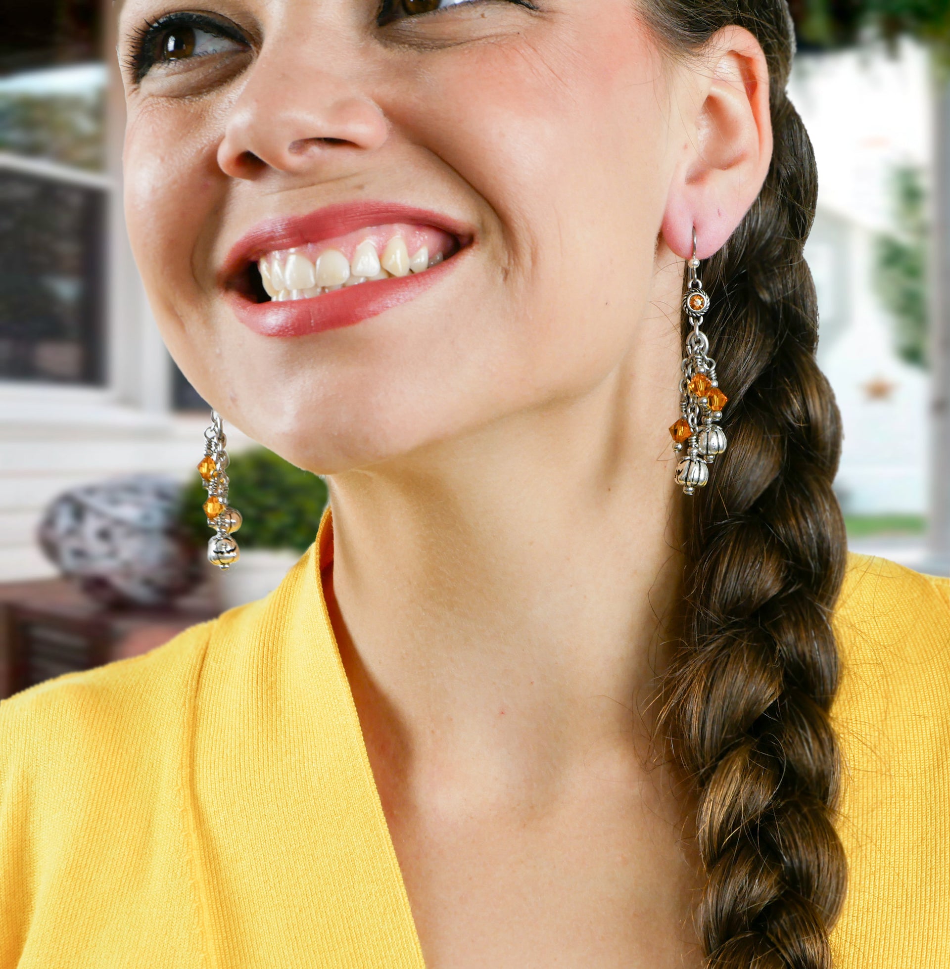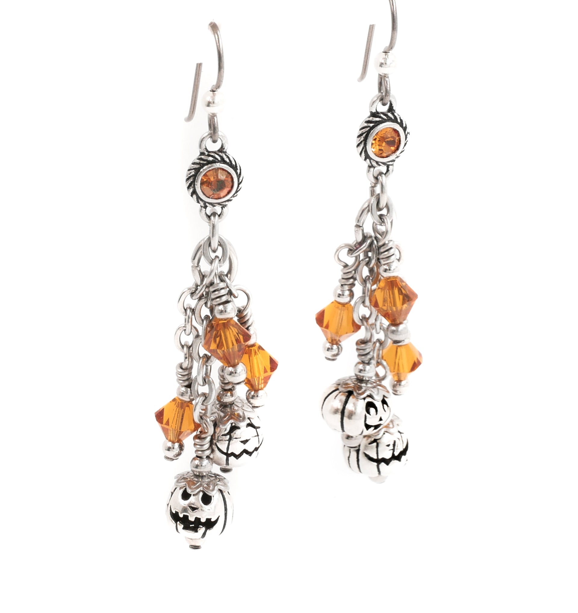You can't help smiling at Jack O Lanterns and their funny faces and you'll be smiling all day with our sterling silver Pumpkin Earrings with Topaz Crystals by Sparkling, perfect for a bit of whimsy with any outfit. Artist crafted jewelry in Timeless Stainless Steel.