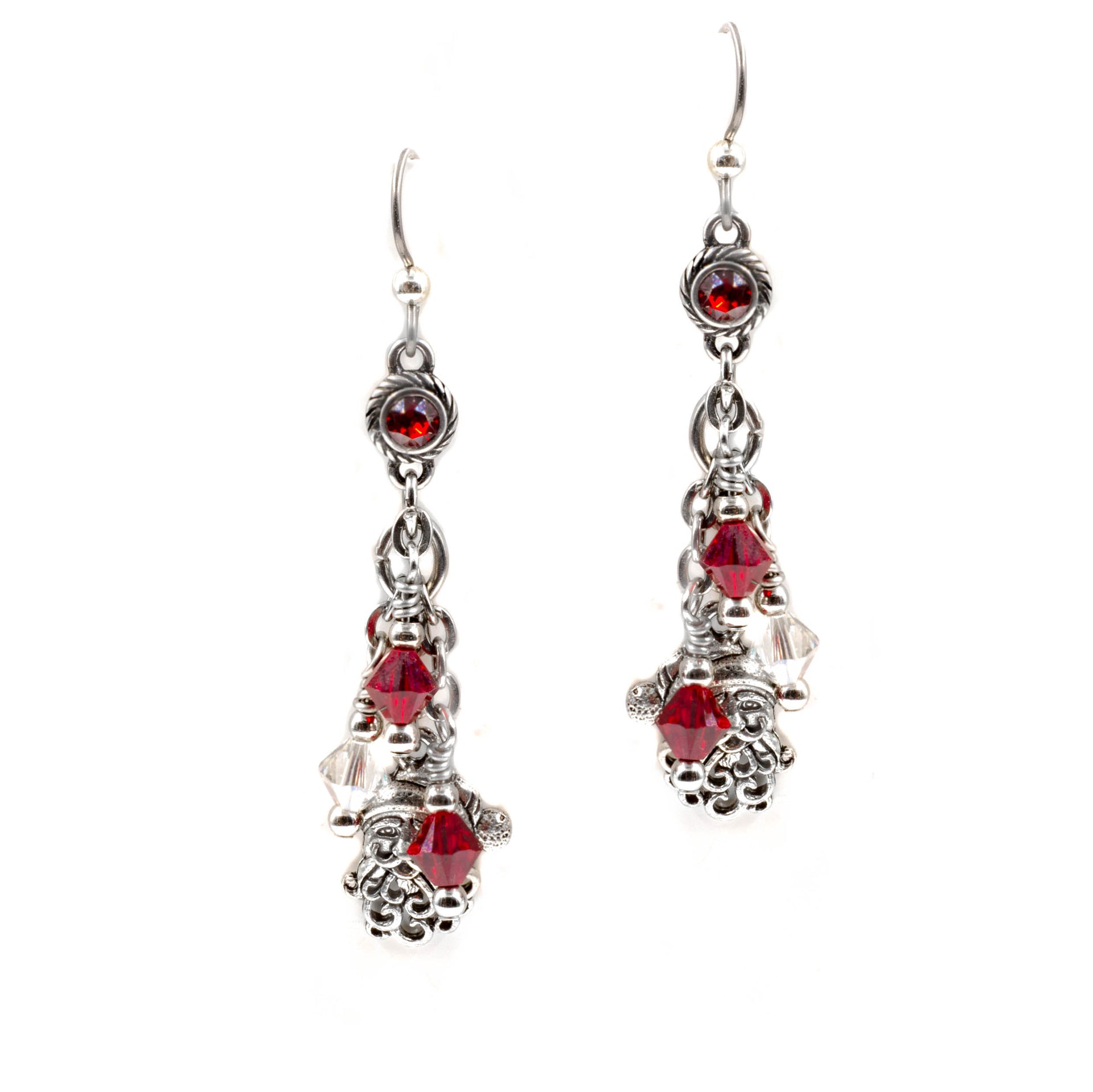 Ruby Crystal Santa Earrings