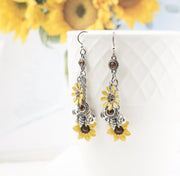 Sunflower Earrings with Chocolate Crystals