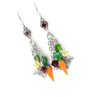 Heaven is spending time in your vegetable garden. Colorful Vegetable Garden earrings to match our Vegetable Garden Bracelet. The drop charms earrings have been mirrored to look lovely when wearing and can be created with ear wires or spring back hoops for non pierced ears. Artist created in timeless stainless steel.