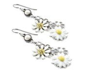 You can't help smiling at Daisies, and you'll be smiling all day with our Yellow Daisy Earrings with real fresh water pearls, perfect for a bit of whimsy with any outfit. Surrounded with hand enameled daisies set with Sparkling crystals and we create them right in our studio. Artist crafted jewelry in Timeless Stainless Steel.  Comes in french hooks for pierced ears or clip on hoops for non pierced ears.