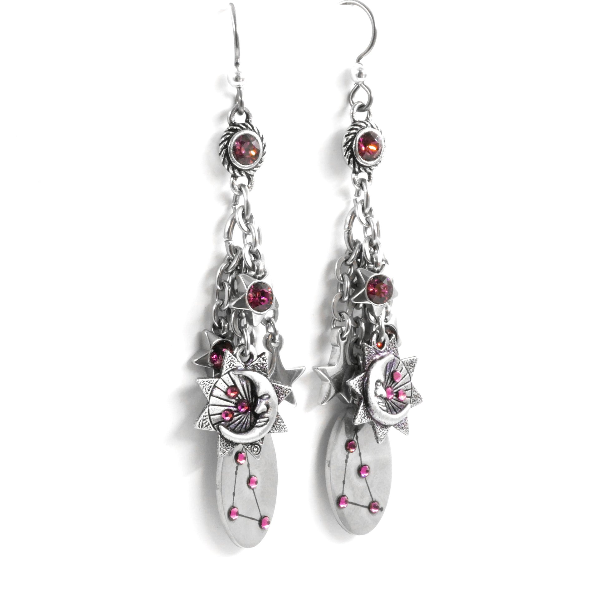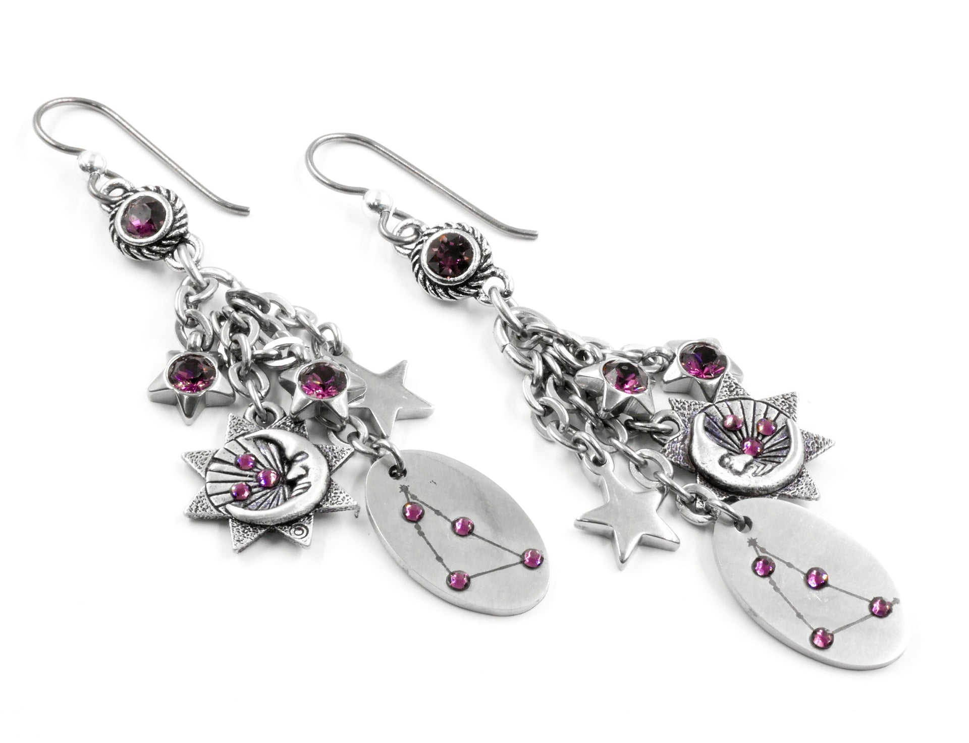 These beautiful Capricorn Zodiac Earrings are created with the Capricorn Constellation, choice of birthstone, and lots of magical stars. The drop on the earrings are 2" and handcrafted in solid stainless steel. Your earrings will never turn color and are non tarnishing.