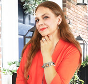 Celebrate Halloween and your love of Nostalgia with this hand enameled pumpkin charm bracelet with vintage images from the 1930's. Artisan Crafted in our California studio with handmade Porcelain Pumpkin Beads, Colorful Crystals in Jet Black and Tangerine Orange, Personalized engraved charms, plus loaded with over 30 Halloween Charms. Timeless Stainless Steel, Artisan Crafted with a lifetime warranty.