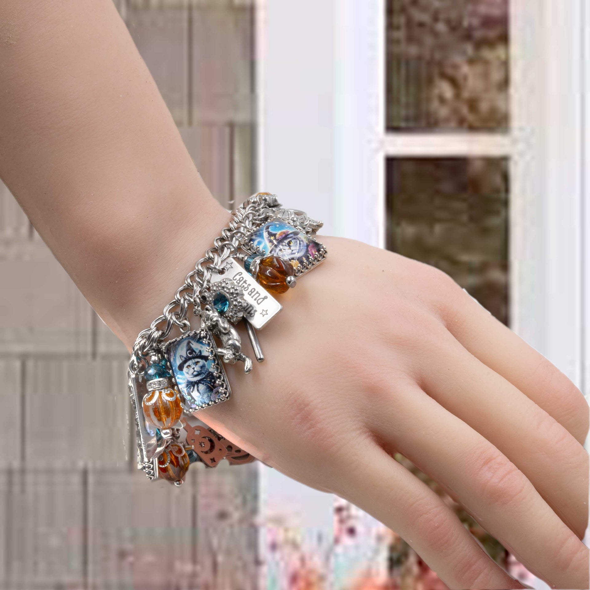 Black cats, moonlight, and a little sparkle—this Halloween bracelet is all treats, no tricks.