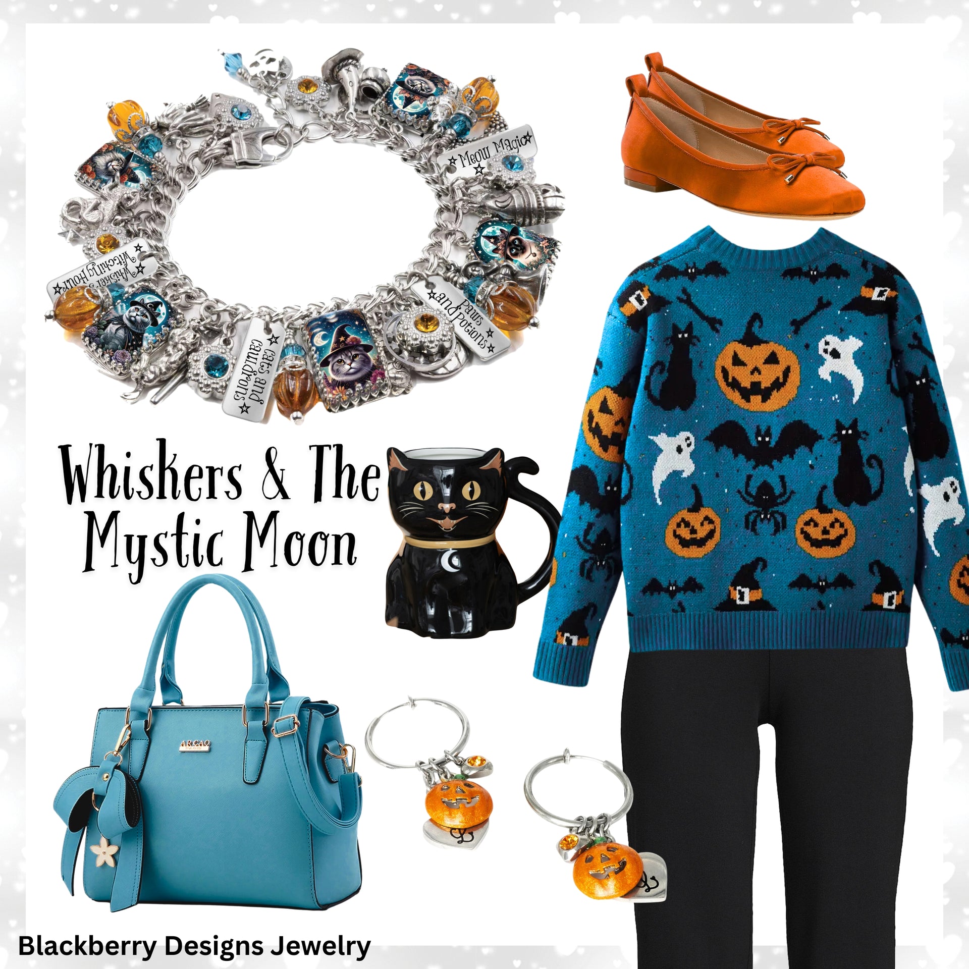 Halloween Cat Bracelet – Witchy Black Cats & Moons