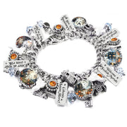 Looking for the perfect Halloween accessory? This whimsical ghost charm bracelet is a nostalgic nod to haunted houses, trick-or-treat memories, and spooky October nights. Each charm is lovingly handcrafted by artist Dea Shelton in California, featuring eerie ghost scenes, tiny haunted mansions, jack-o'-lanterns, and playful engraved sayings like: