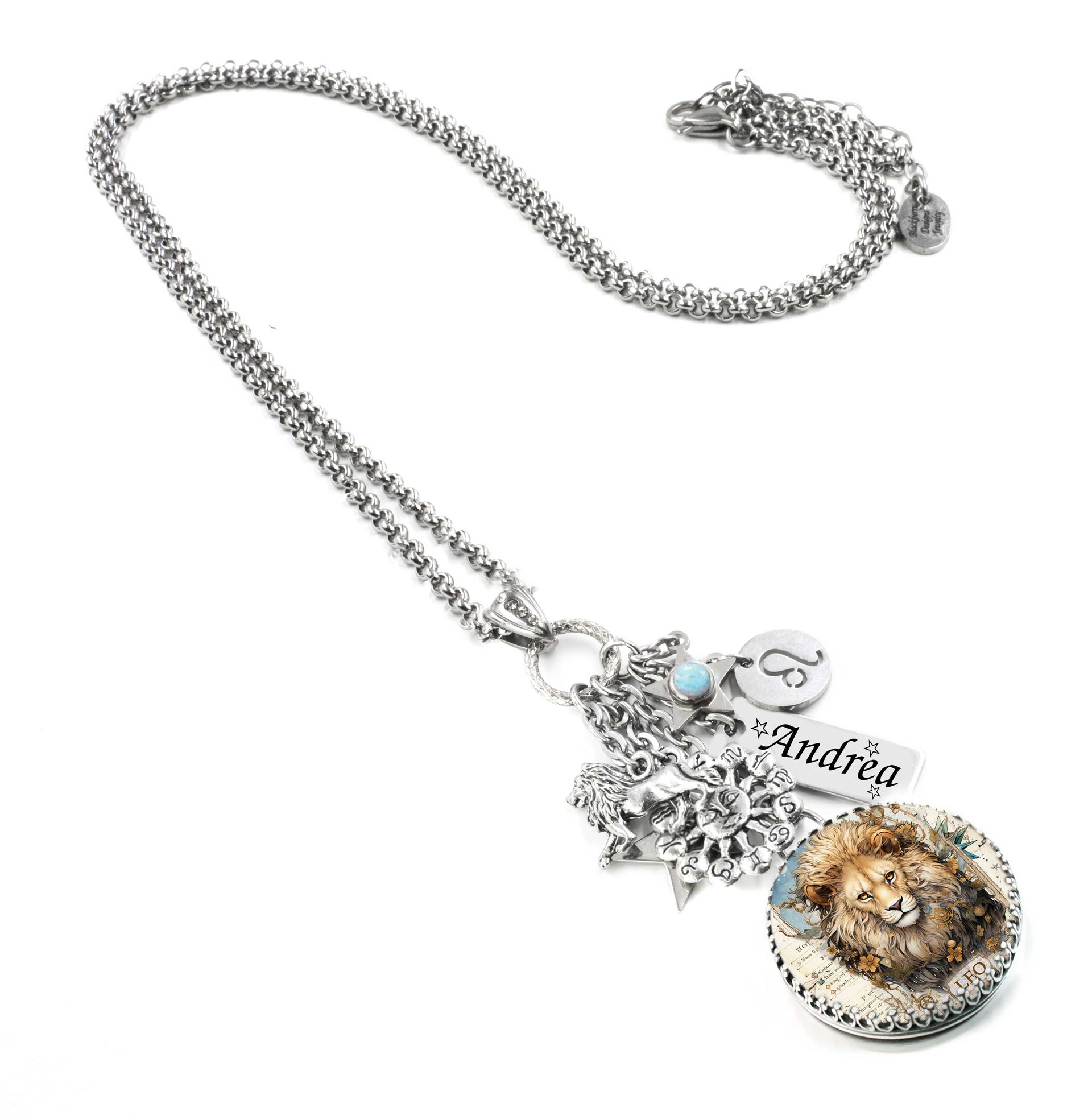 The Leo Charm Necklace is adjustable and can be custom sized to any length. All of our jewelry is created in non-tarnish stainless steel for an antique silver look that’s timeless. This Leo necklace with pendant will wear like new for years to come! Some of our customers have been wearing their charm necklaces for over a decade and they still look fantastic.