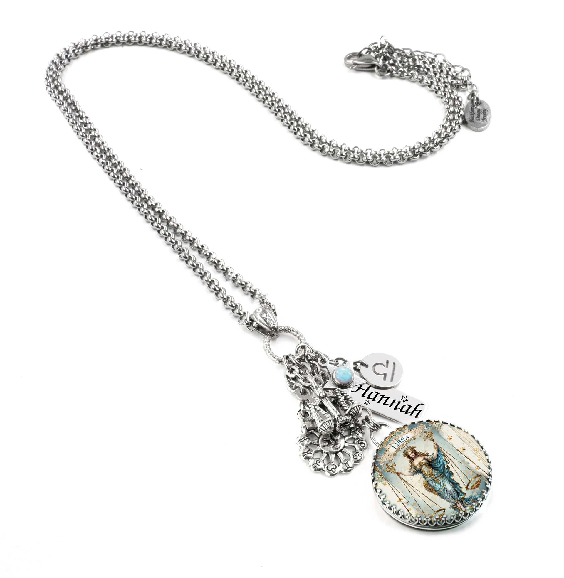You'll be reminded to have balance and harmony in your life and follow your destiny while wearing your one of a kind personalized Libra Horoscope Necklace.