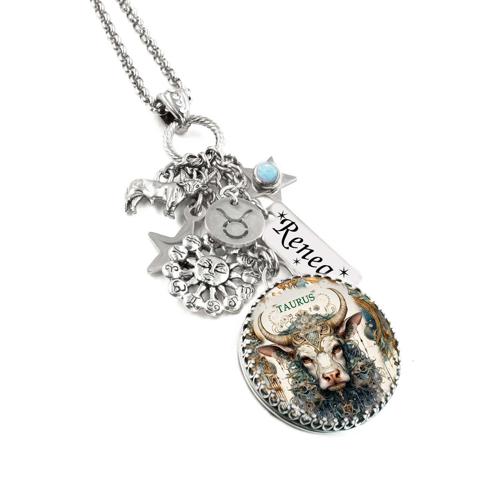 You'll be reminded of the strength you have in your life and follow your destiny while wearing your one of a kind personalized Taurus Horoscope Necklace and Taurus Astrological Sign.