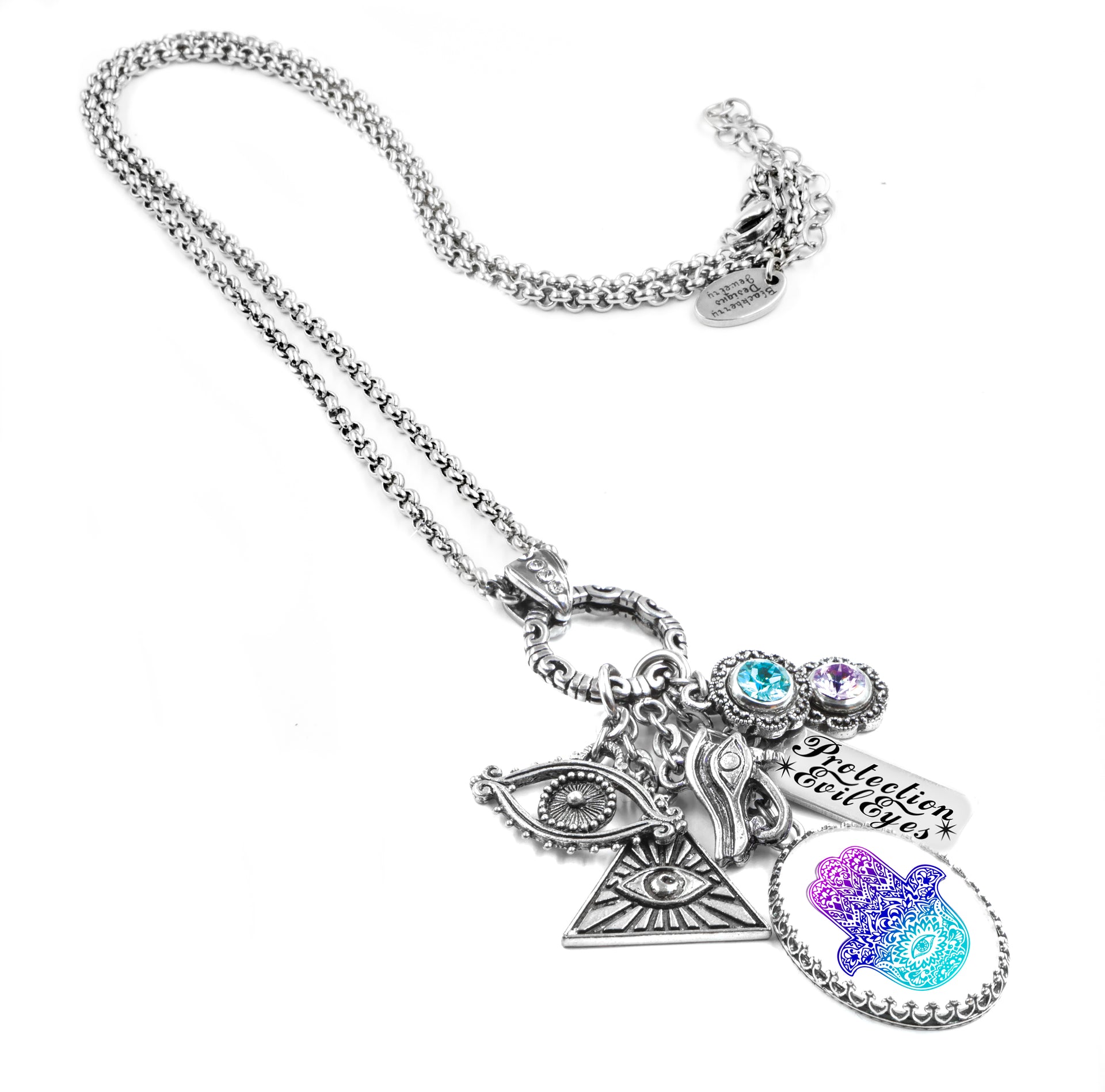 - Colorful Crystals to match Hamsa Hand with evil eye