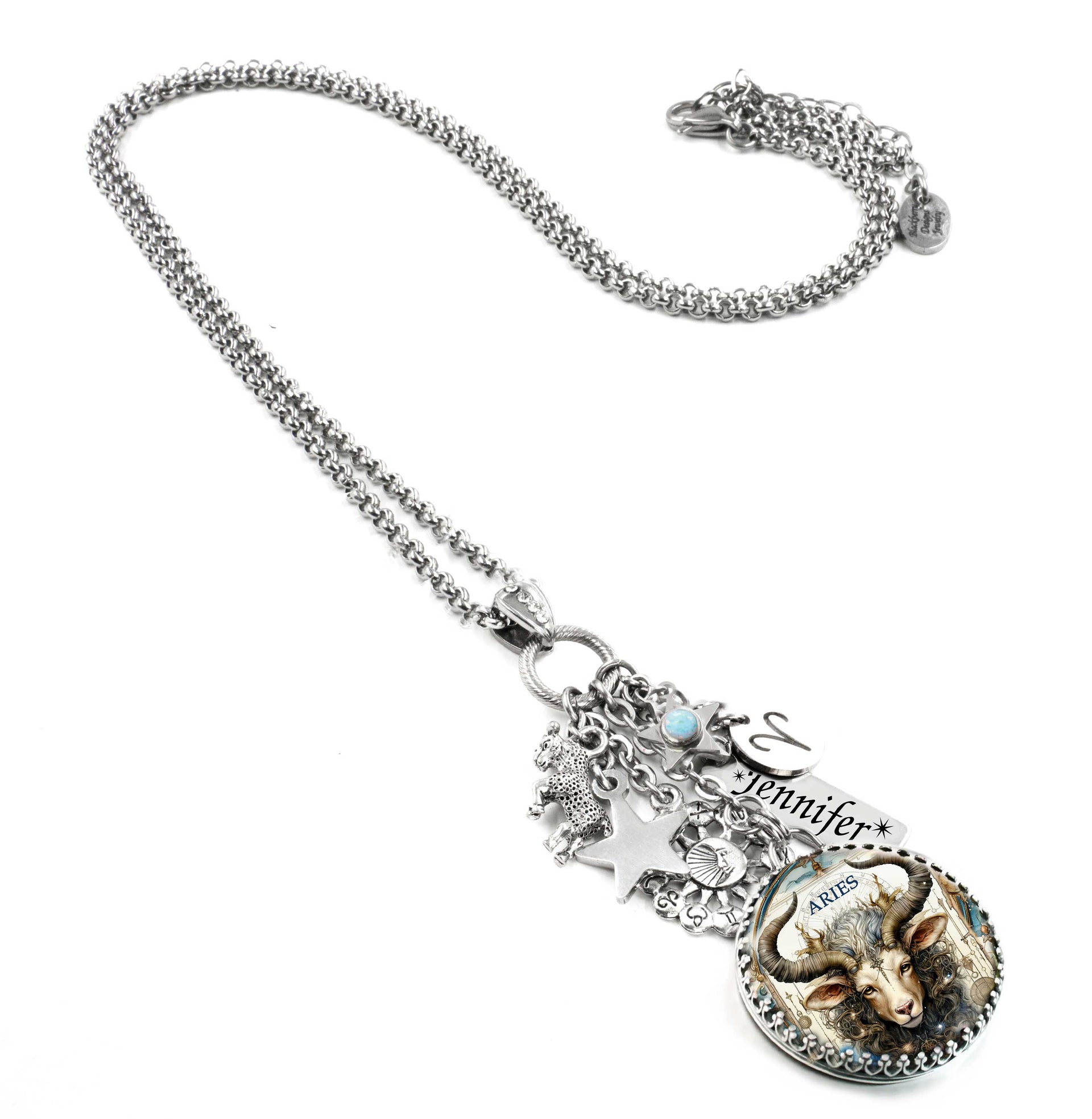 The Aries Charm Necklace is adjustable and can be custom sized to any length. All of our jewelry is created in non-tarnish stainless steel for an antique silver look that’s timeless. This Aries necklace with pendant will wear like new for years to come! Some of our customers have been wearing their charm necklaces for over a decade and they still look fantastic.