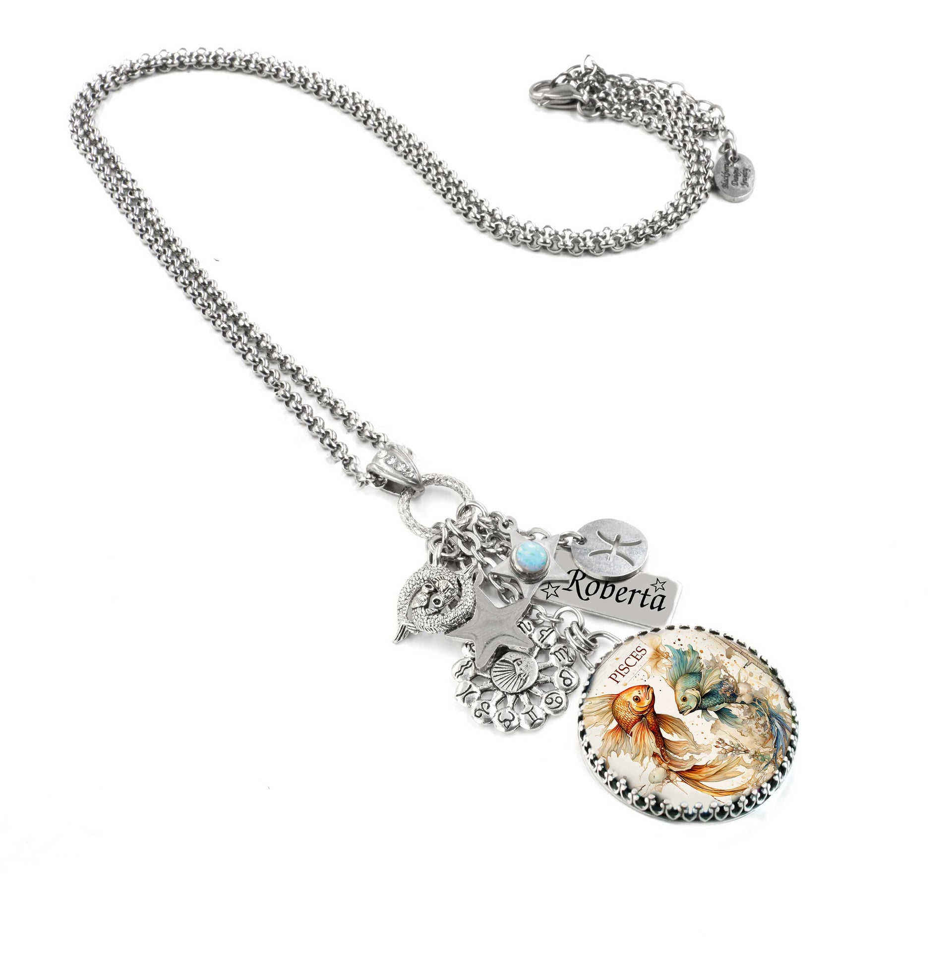 You'll be reminded of how individual and follow your destiny while wearing your one of a kind personalized Pisces Horoscope Necklace and Pisces Astrological Sign.