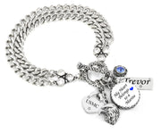 The bracelet itself is made from high-quality, never-tarnish silver, ensuring that it will remain a cherished keepsake for years to come. And to make it truly special, we offer custom engraving of your loved one's name and birthstone, adding a personal touch that will be treasured forever.
