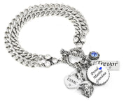 Grandma will love showing her pride with a beautiful double-chain silver bracelet that honors her granddaughter or grandson in the Military. This is a collectible bracelet that is made of beautiful silver and personalized with engraved charms.
