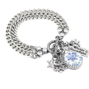 Celebrate Magical Moments with a Crystal Snowflake Charm Bracelet.  Moonlight Crystals with an actual snowflake image (taken under a microscope) add to the magic, surrounded with Colorful snowflake charms. Make this piece a go to favorite for all the seasons. Artist crafted in stainless steel, because how its made matters. Your memories last forever, so should your jewelry.