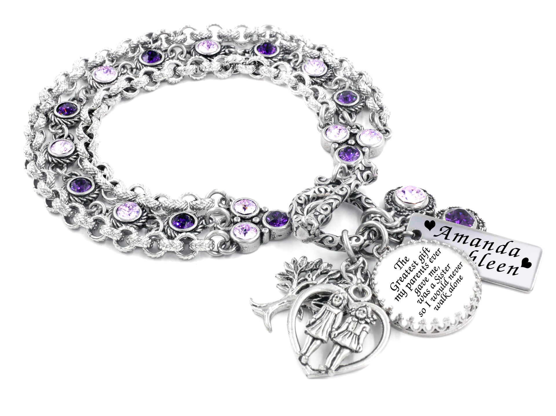 Sisters are friends forever. Celebrate your sister bond with our entire line of sisters necklaces, bracelet and charms. Personalized birthstone and engraving.