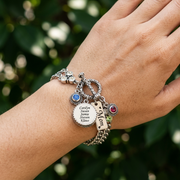 This personalized birthstone bracelet is a heartfelt gift designed for mothers and grandmothers who cherish family above all else. Crafted from durable stainless steel and accented with sterling silver, this custom name bracelet features the names of her children or grandchildren alongside colorful crystal birthstones, creating a unique birthstone charm bracelet that celebrates family bonds. The engraved mothers bracelet offers a meaningful keepsake that combines artisan handcrafted jewelry quality with everyday wearability.