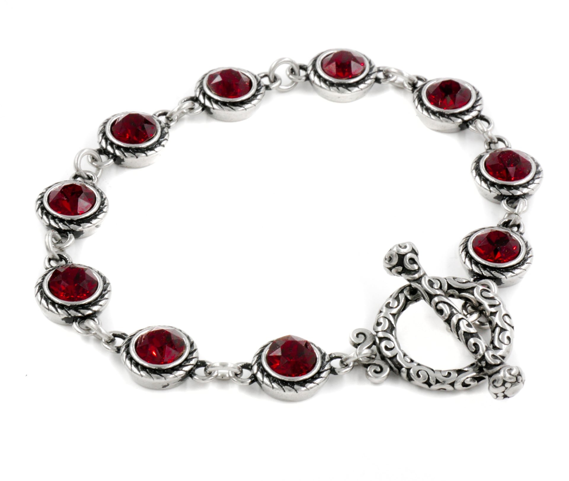 We believe that how it’s made matters. We use high quality, durable yet lightweight stainless steel in all of our jewelry including this Garnet Crystal Link Bracelet, because we believe every woman was born to sparkle. Unlike plated metals, stainless steel will never turn color or tarnish, so she can wear it for years! The color of stainless steel looks like antique silver, and many women love that jewelry vintage look.