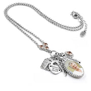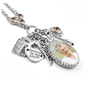 Introducing our memorial necklace with picture, the perfect way to keep your loved one close to your heart. This stunning photo jewelry and memorial necklace with picture is custom made just for you. Simply provide us with your favorite photograph, picture, charms, crystals, and text for engraving, and we'll create a one of a kind elegant pendant that will be treasured forever.