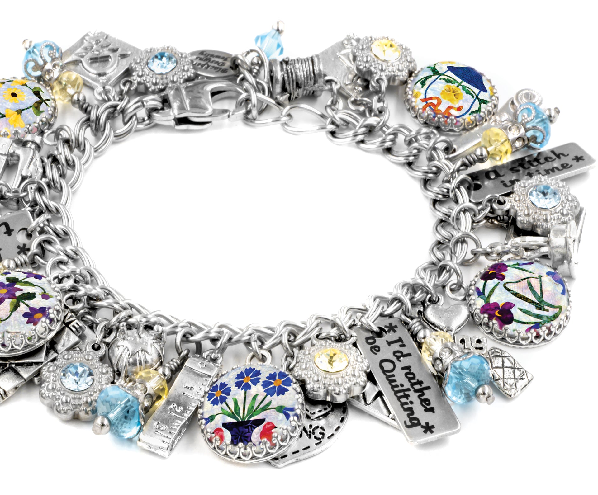 Celebrate the love of traditional quilts with a beautiful patchwork quilt charm bracelet. This Quilt charm bracelet brings back those memories of a magical time when the women of my family used to create quilts by hand and life was all about family and that anything was possible. Handcrafted Jewelry in Timeless Stainless Steel.