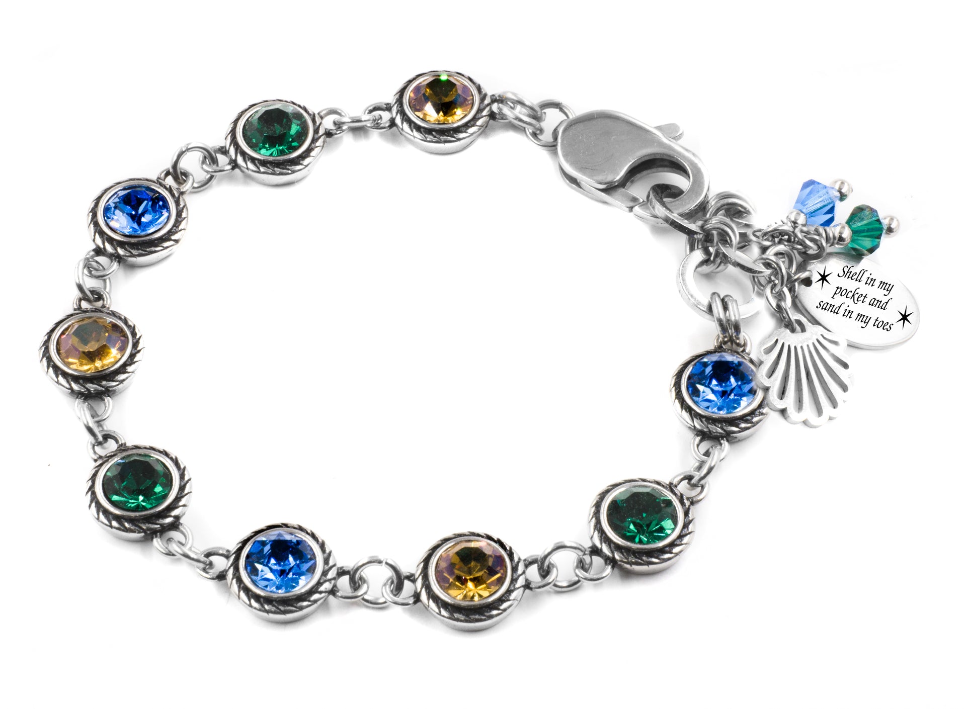 The best days are those with a shell in your pocket and sand in your toes, with our seashell Crystal Link Bracelet. Handcrafted art jewelry in beautiful and durable no tarnish Stainless Steel, curved links for comfort, won't snag clothing, adjustable for the perfect fit. Artist Crafted Jewelry, because how it's made, matters. You're one of a kind, this is your jewelry.