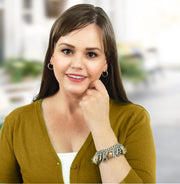 Celebrate your love of Scotland with this amazing Scottish Bracelet. Created in beautiful stainless steel with images of vintage Scotland travel posters, Engraved charms of Bonnie Scotland, Glasgow, Glen Ogle, Edinburgh, Taymouth Castle.