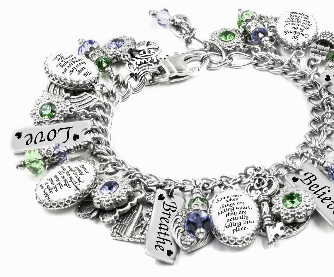 What a bracelet. 5 great quotes in sterling silver setting with your choice of crystal color. "Thoughts become things, choose the good ones."